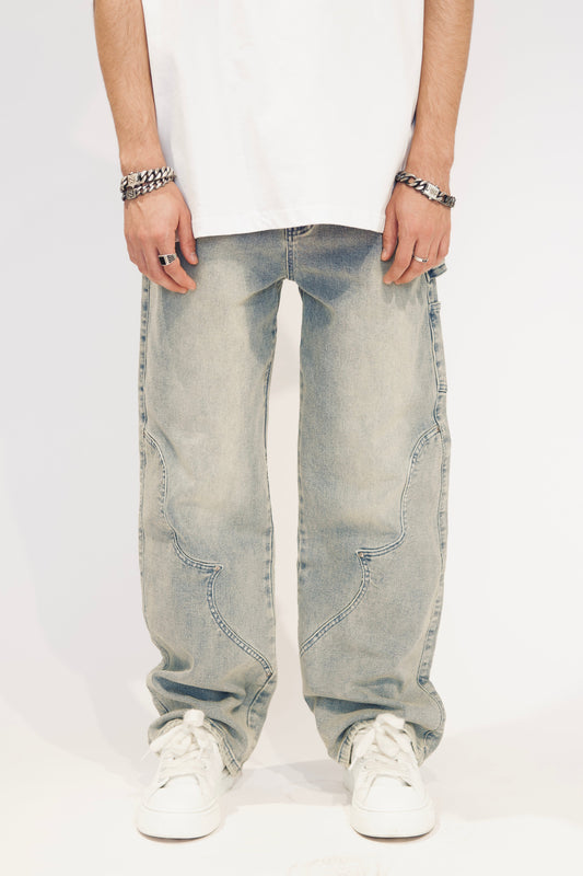 CUT OUT WASHED BLUE DENIM