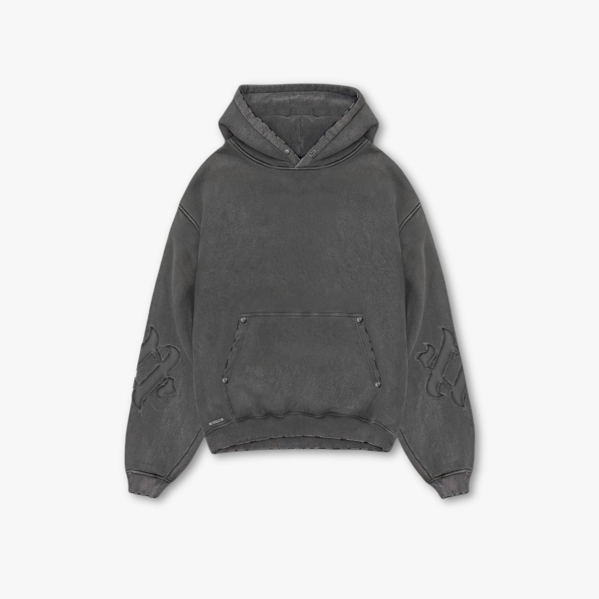 Vintage grey oversized fit hoodie in a heavy weight jersey cotton. Super soft, pre-shrunk and piece dyed for the ultimate jersey. Ribbed hem & cuffs.