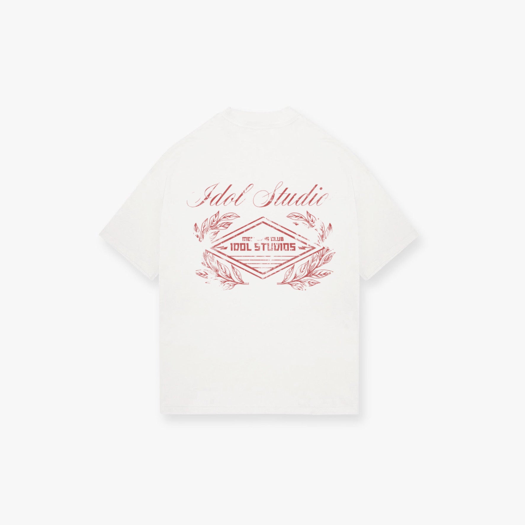 White T-shirt with print on the front in a medium weight cotton with an oversized fit.